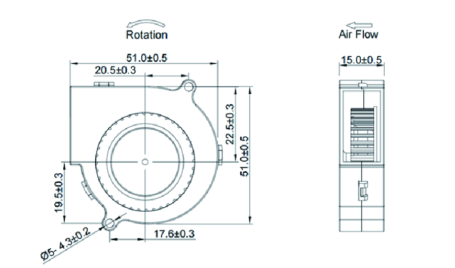 | 風(fēng)扇框體材料 | PA塑料UL94 V0 |