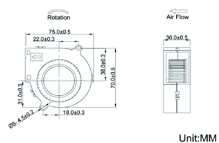 | 風(fēng)扇框體材料 | PA塑料UL94 V0 |