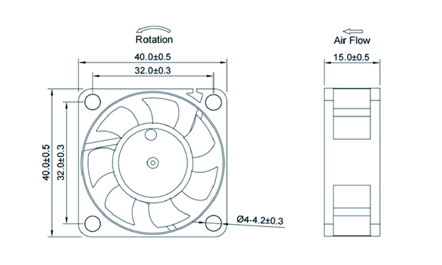 | 風(fēng)扇框體材料 | PA塑料UL94 V0 |