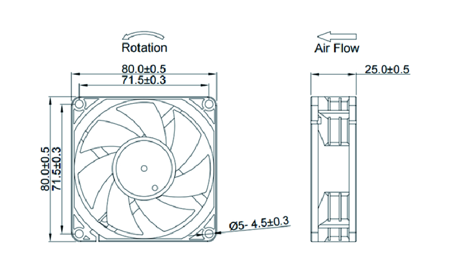 | 風(fēng)扇框體材料 | PA塑料UL94 V0 |