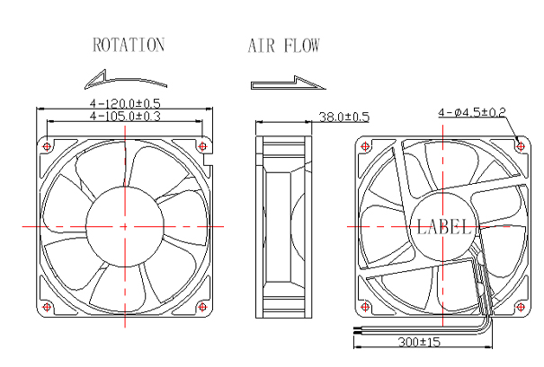 | 風(fēng)扇框體材料 | PA塑料UL94 V0 |